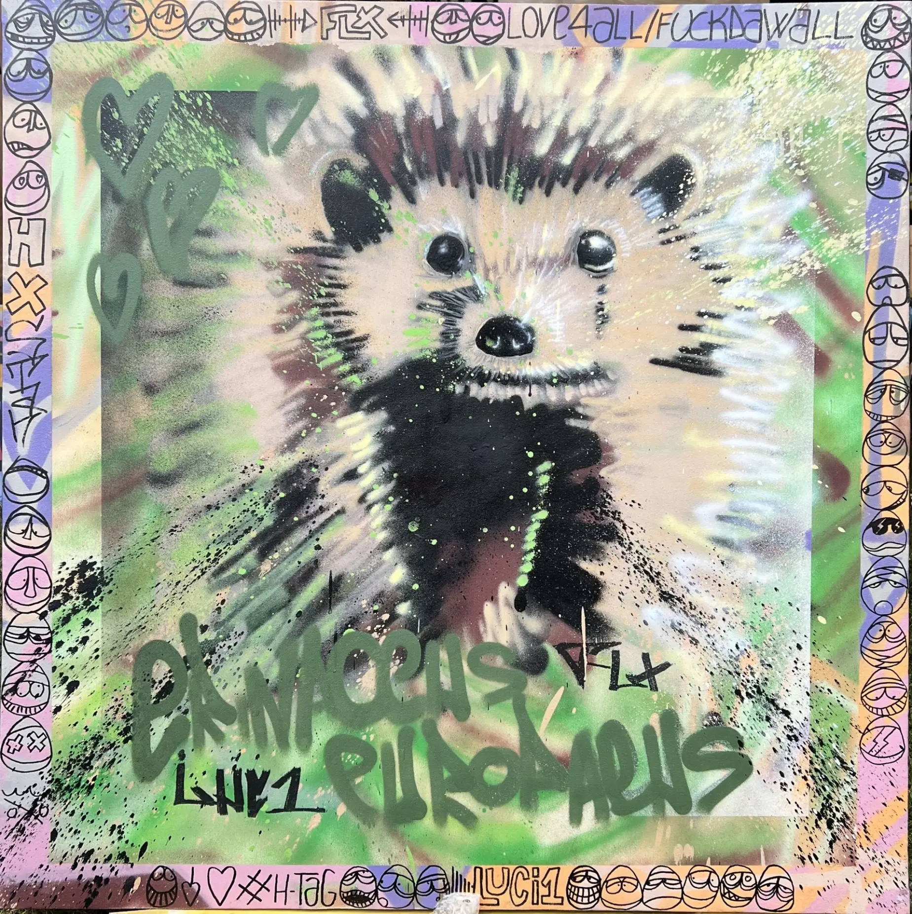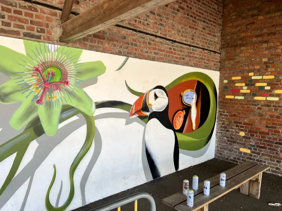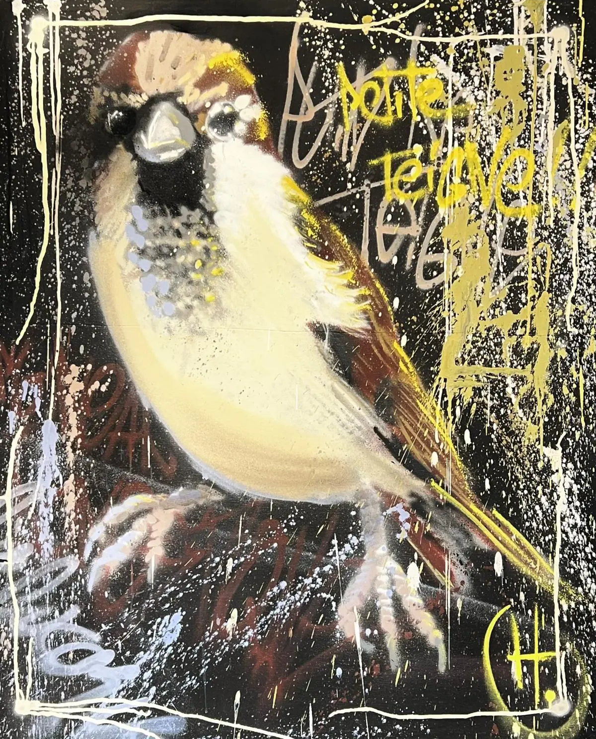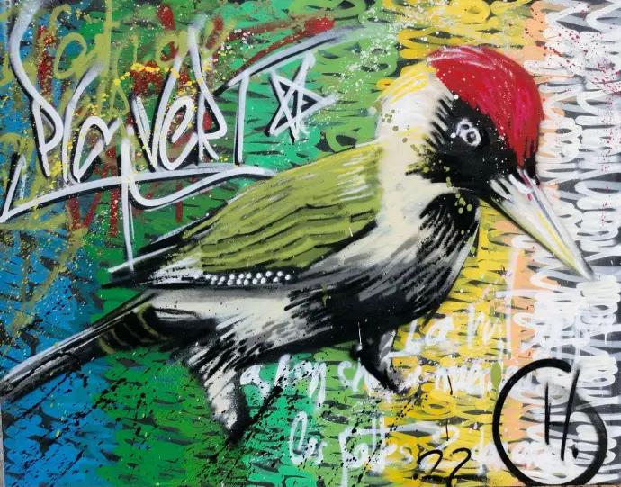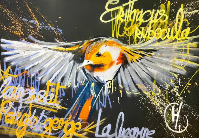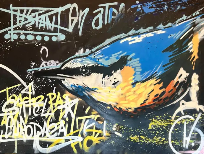 Guillaume déploie son talent aussi bien sur toile que sur les murs, transformant la pratique urbaine du graffiti, ancré dans le street art, en une célébration explosive et colorée de la nature. Par la maîtrise de la bombe aérosol, il révèle, de la faune et la flore, les couleurs vives et intenses qui éclatent sur la rugosité des espaces urbains. Ses œuvres sont un souffle vibrant d'expression et de sentiment, où chaque trait traduit la réconciliation poétique entre la ville et la campagne, entre béton et vie sauvage. Cette tension assumée se fait dialogue visuel puissant, invitant à une réflexion profonde sur notre rapport à l'environnement. Que ce soit sur un mur ou une toile, son art transmet une énergie singulière et une émotion authentique.
